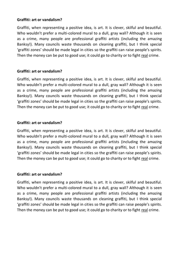 Graffiti Art Or Vandalism Persuasive Writing Teaching Resources